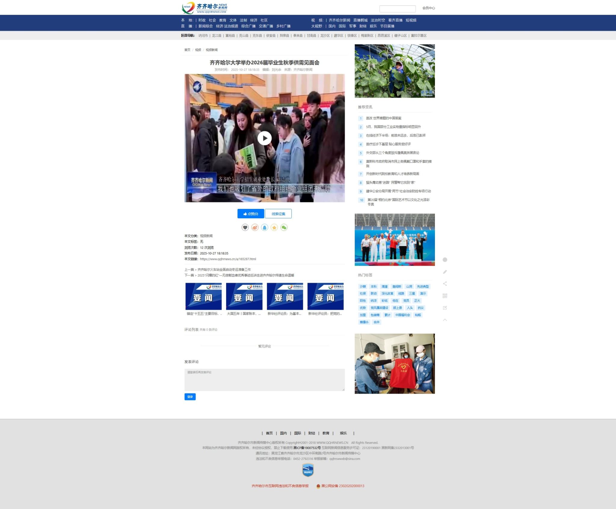 黑水琳瑯映鶴城,寒域遺珠綻芳華。10月29日,全省公共圖書館領(lǐng)導(dǎo)及我校師生代表400余人齊聚日新大廈,共同參與黑龍江省“觸摸千年文脈,賡續(xù)文明薪火——古籍保護(hù)課程進(jìn)校園”齊齊哈爾大學(xué)專場活動(dòng)。活動(dòng)由國家圖書館(國家古籍保護(hù)中心)、黑龍江省文化和旅游廳主辦,黑龍江省圖書館(黑龍江省古籍保護(hù)中心)、黑龍江省高等學(xué)校圖書情報(bào)工作委員會(huì)、齊齊哈爾市文化廣電和旅游局、齊齊哈爾大學(xué)承辦。第十四屆全國政協(xié)委員、國家...